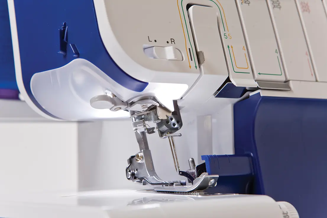 Sie bietet Overlock-Stiche mit 3 oder 4 Fäden, eine leicht zu verfolgende Fadenführung und ein Einfädelsystem für den Unterfaden. Die wahlweise mit Freiarm oder Flachbett nutzbare Nähfläche gibt Ihnen viel Kontrolle und verhilft Ihnen immer wieder zu hervorragenden Ergebnissen.