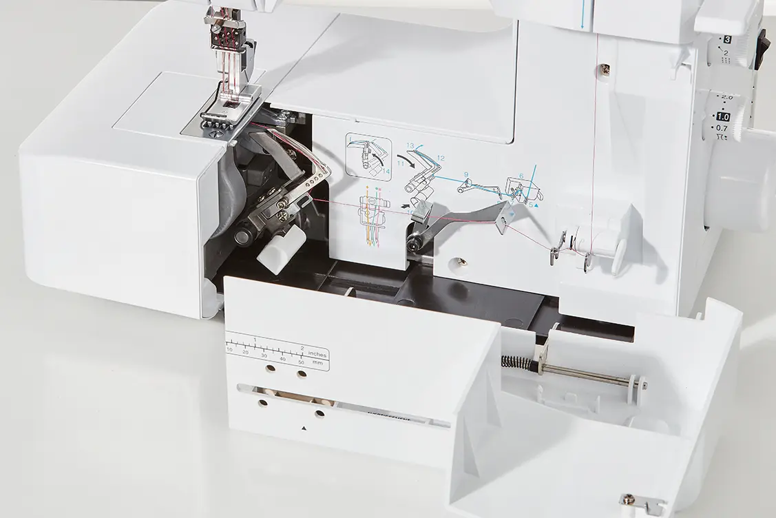 Schnelles und einfaches Einfädeln des Greifers. Besonders hilfreich sind die farbcodierten Fadenführungen.