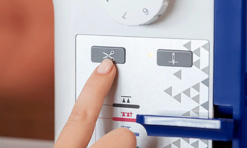 Schneiden Sie Ihren Ober- und Unterfaden mit einem Knopfdruck ab.