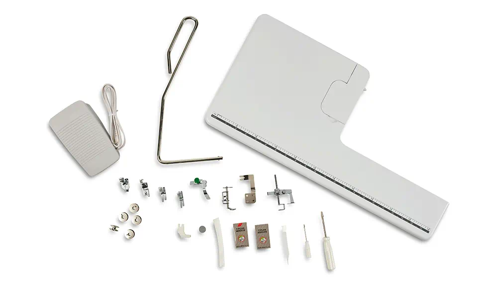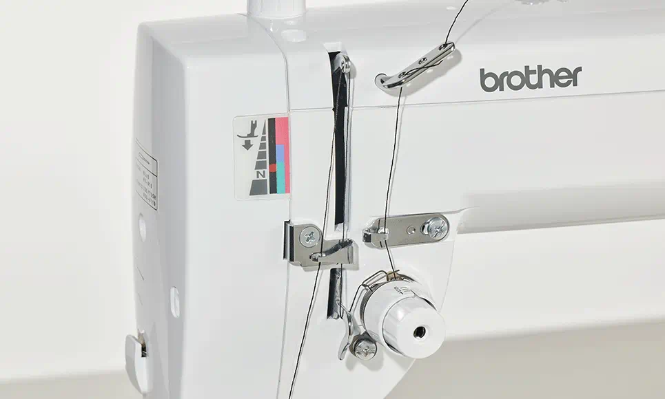 Durch das Nadeltransportsystem und die vier Höheneinstellungen für den Transporteur verarbeiten Sie eine Vielzahl von Stoffen, von strapazierfähigem Denim bis hin zu kniffligen Samtstoffen. Das vertikale Greifersystem, das farbcodierte Einstellrad für den Nähfußdruck sowie der mitgelieferten Kniehebel sorgen dafür, dass Sie die Kontrolle über Ihre Arbeit behalten – egal bei welchem Stoff. Sparen Sie außerdem Zeit mit der Fadenführung für dicke Garne, dem automatischen Fadenabschneider und dem Nadeleinfädler.