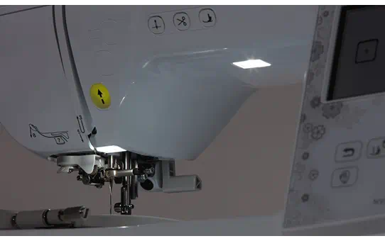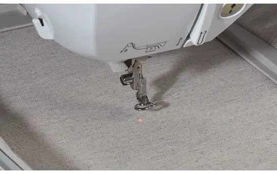 Perfektion ist bei dieser Maschine Standard. Mit dem LED-Pointer sehen Sie die Einstichposition der Nadel genau. Somit können Sie Ihre Stickerei perfekt positionieren. Der automatische Fadenabschneider schneidet sogar Sprungstiche sauber ab.