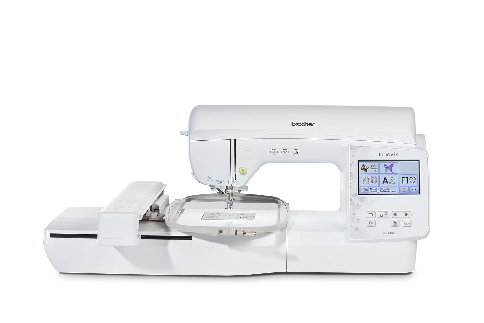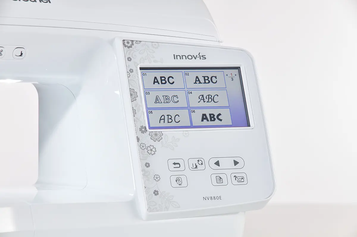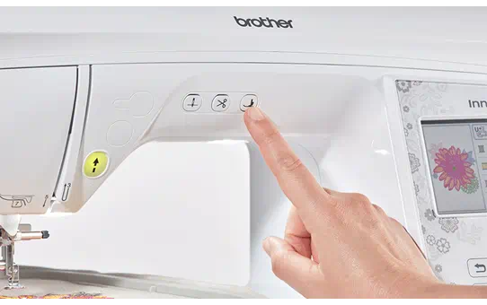 Ihre Maschine können Sie so einstellen, dass sie automatisch den Nähfuß absenkt und mit dem Sticken beginnt, wenn Sie die Start/Stopp-Taste drücken. Die Innov-is NV880E erkennt sogar automatisch den genähten Stoff und passt die Fadenspannung entsprechend an.