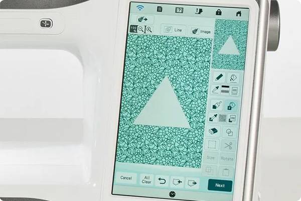 Wir wissen, wie wichtig es ist, dass Sie Ihrer Kreativität freien Lauf lassen können. Deshalb ist auf jeder Stellaire die Brother exklusive Software My Design Center vorinstalliert. Mit diesem leistungsstarken, benutzerfreundlichen Programm und der Stellaire macht es gleich doppelt Spaß, kreativ zu sein. Zeichnen Sie z.B. direkt auf die große Zeichenfläche des Touchscreens der Stellaire. In My Design Center können Sie mit dem Zoom von bis zu 800% für perfekte Genauigkeit sorgen. Oder importieren Sie Ihre Lieblings-JPGs über den eingebauten USB-Anschluss und sehen Sie staunend zu, wie die Bilder direkt an der Maschine in Stickdaten umgewandelt werden.