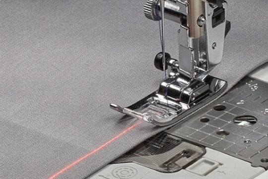 Präzision erreichen Sie unter anderem mit Hilfe der Laserführungslinie, der Punktverriegelungstaste, dem elektronischen Obertransportfuß und der Präzisions-Drehfunktion. Mit ICAPS, der automatischen Erkennung der Stoffstärke, erreichen Sie einen konstanten Nähfußdruck und damit eine einheitliche Stichlänge. Optional erhältlich ist das ergonomisch gestaltete Multifunktionsfußpedal.