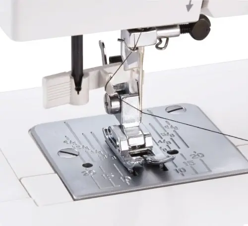 Der großzügige Nähbereich links und rechts der Nadel, ermöglicht auch größere Nähprojekte. Ein weiteres bemerkenswertes Merkmal der Janome 1522 ist die einstellbare dreistufige Nähfußdruckregulierung. Dank dieser Funktion können Sie jede Art von Stoff nähen. Der Stoff wird nicht übermäßig gedehnt und perfekt transportiert.
