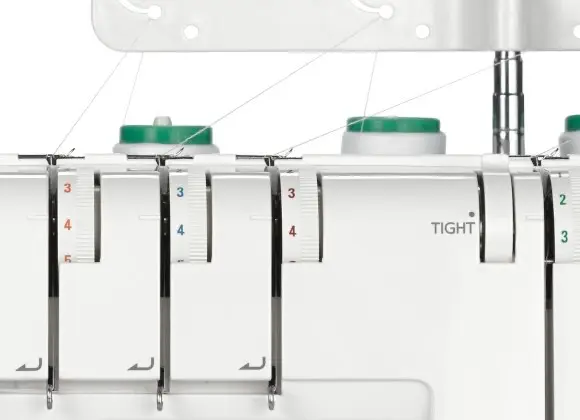![]() | TLC-System Schalten Sie einfach den Regler um, damit die Greiferspannung für feine Materialien optimiert wird und die Stiche besser gebildet werden. Tension-Lever-Control ist schnell aktiv und ist optimal neben dem Spannungsregler für den Greiferfaden platziert. |