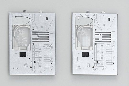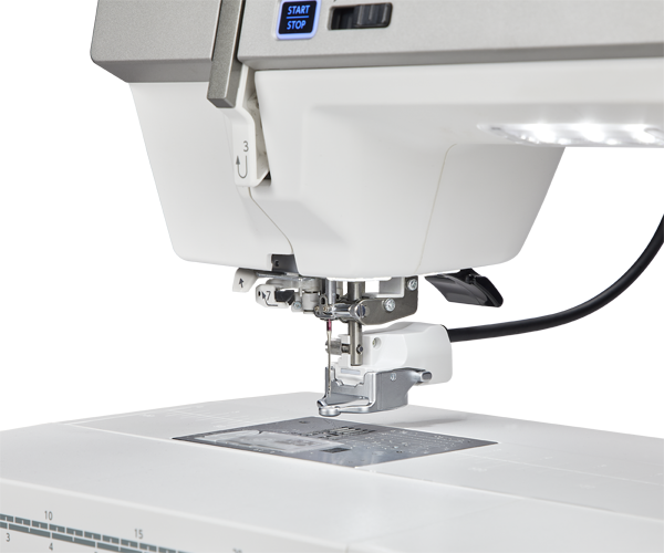 Am Anfang steht das Einfädeln und schon hier punktet die Janome Horizon MC 9480QC Professional mit dem Superior-Nadeleinfädler: Den Faden seitlich einklemmen, Hebel drücken und der Einfädler zieht den Faden durch das Öhr. Das tun viele, aber bei dieser Nähmaschine entsteht hinter der Nadel keine Schlaufe, an der man den Faden erst weiter ziehen muss, sondern es ist wirklich fix und fertig eingefädelt. Zum Absenken des Nähfußes hat man die Wahl zwischen dem Hebel hinten, einer automatischen Absenkung oder dem praktischen Kniehebel. Dieser verfügt bei der MC 9480QCP über eine zweite Funktion! Er kann alternativ auch für die Breite des Zickzackstichs genutzt werden. Die Breite eines Satinstichs kann also während des Nähens variieren, für noch mehr kreative Gestaltungsmöglichkeiten. Allerdings ist die Stichbreite und Stichlänge insgesamt sehr komfortabel einzustellen: Wahlweise über das Display, aber auch ganz einfach über zwei Drehregler unter dem Bildschirm. Ebenso flexibel zeigt sich die JANOME auch bei den Stichplatten. Drei verschiedene sind im Lieferumfang enthalten: