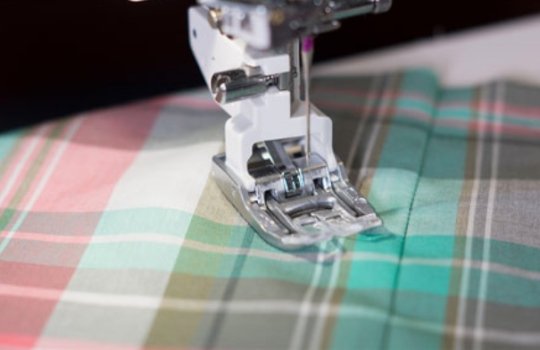 AcuFeed Flex transportiert Ihren Stoff mühelos durch Kontakt von oben und unten. Perfekt beim Quilten, abpassen von Streifen oder Karos im Stoff und allen anderen Näharbeiten, die präzises Arbeiten erfordern.