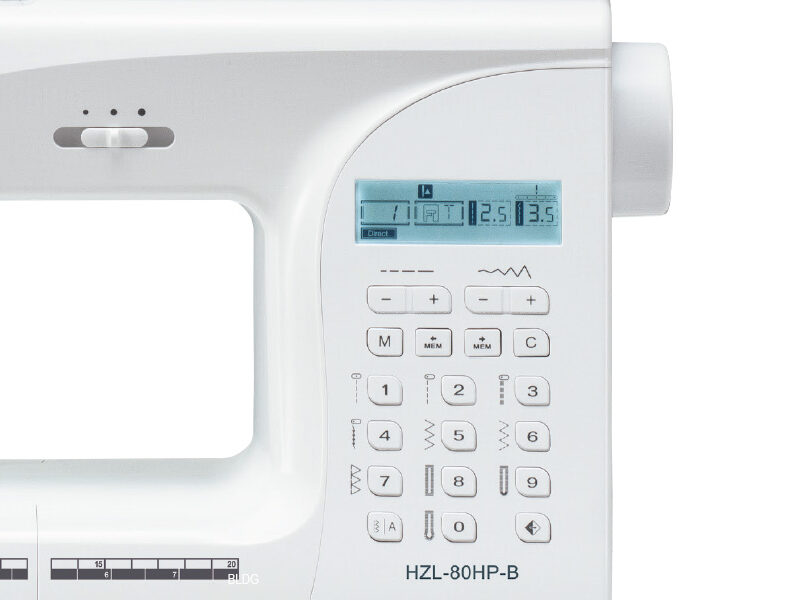 Die JUKI HZL-80HP-B ist das Top Modell der JUKI HZL-HSerie. Sie bietet Ihnen alles was das „Nähherz“ begehrt: 197 Stichmuster darunter, 1 Alphabet mit Groß- und Kleinbuchstaben, Zahlen, Sonderzeichen, 7 Knopflöcher und natürlich auch Stretchstiche für dehnbare Stoffe. Die Zierstiche und das Alphabet können Dank der Stichbreite bis zu 7mm groß genäht werden. Sie haben die Möglichkeit die Stiche zu spiegeln und sogar einzelne Kombinationen abzuspeichern. Wichtige Nutzstiche und Knopflöcher können Sie direkt bei der JUKI HZL-80HP-B auswählen. Dank der LCD Anzeige haben Sie einen perfekten Überblick über die Stichauswahl, Stichlänge- und breite, sowie die Nadelposition. Ihnen wird sogar angezeigt, welcher Nähfuß benötigt wird.