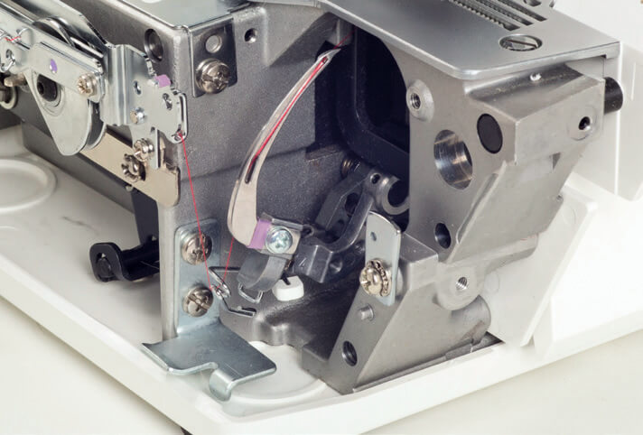 Die JUKI Coverlock MCS-1800 näht mit 1300 Stichen/min. schnell, gewohnt leise und mit starkem Motor mit dem typischen „JUKI Motor SOUND“.