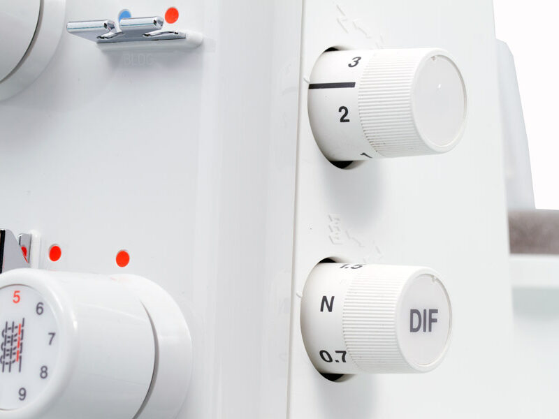 Die MO-654DE ist eine robuste und kompakte Overlock, die anderen in nichts nachsteht. Die eingebauten hilfreichen Funktionen machen auch das Overlocken für Sie zu einem Erlebnis. Die MO-654DE besitzt eine praktische Einfädelhilfe für den Untergreifer und professionelle Einstellmöglichkeiten für Schnittbreite, Stichlänge und Differenzialtransport. Für das optimale Beschneiden Ihrer Stoffkanten von dicken bis hin zu dünnen Stoffen sorgt ein hochbelastbares Ober- und Untermessersystem.