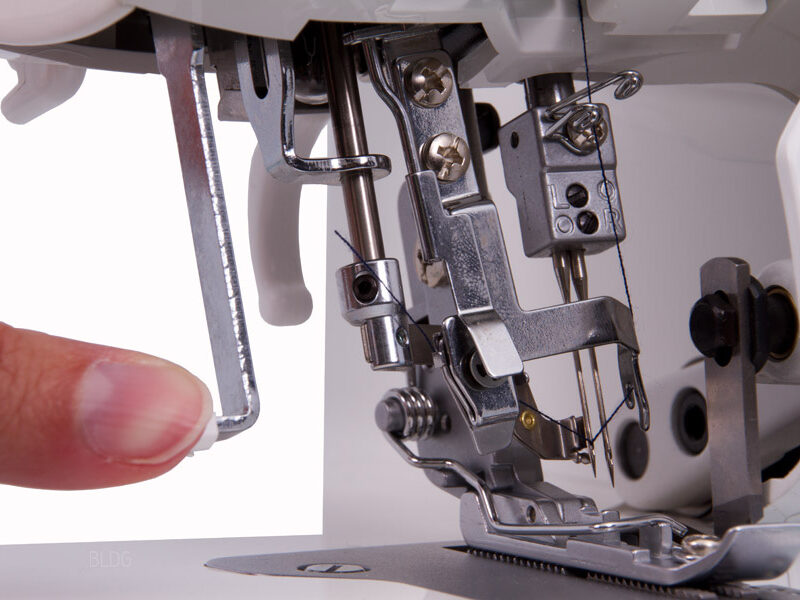 Wenn’s ganz genau werden soll, unterstützt Sie die integrierte Stoffführung der Juki MO-734DE Overlock-Maschine beim Nähen.