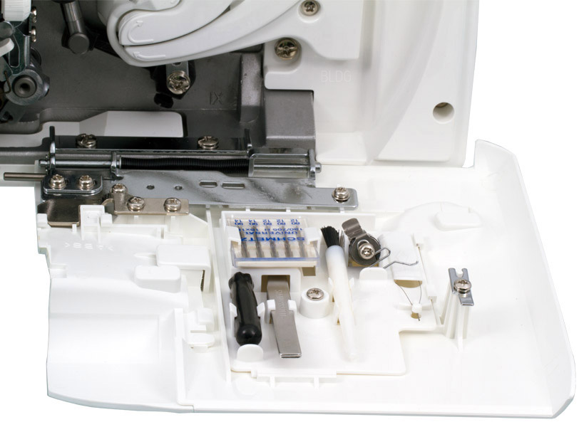 Eine kleine, aber feine Bereicherung an dieser Maschine ist der im Lieferumfang enthaltene Abfallbehälter. Garnreste und Stoffabschnitte fallen sofort während des Nähvorgangs in den Abfallbehälter. Ihre Arbeitsfläche bleibt so stets sauber und übersichtlich. Der Abfallbehälter der MO-734DE lässt sich ohne Mühe abnehmen und Sie können die sich darin befindlichen Nähreste schnell und einfach entsorgen. Sparen Sie sich Zeit, denn dank diesem hilfreichem Zubehör aus dem Hause Juki entfällt das lästige Aufräumen während des Nähens und beim Wechsel zu neuen Nähprojekten. Entleeren Sie einfach nach Belieben den Abfallbehälter Komfort, der sich lohnt!