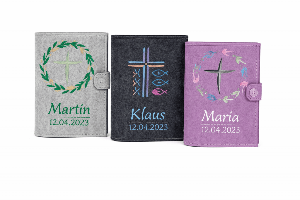Auf Wunsch bestickt mit Name und Datum. Deine persönliche und individuelle Hülle für das katholische Gebet- und Gesangbuch in der Standardausgabe mit hochwertiger Stickerei. Das perfekte Geschenk zur Kommunion oder Taufe!. 100% PES-Filz, Robustes schmutz- & wasserabweisendes Material, Hochwertige Stickerei, Ideale Passform für die Standardausgabe des Gotteslob, Optimaler Schutz